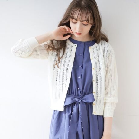 透かし編みがポイントのニットカーディガンです。