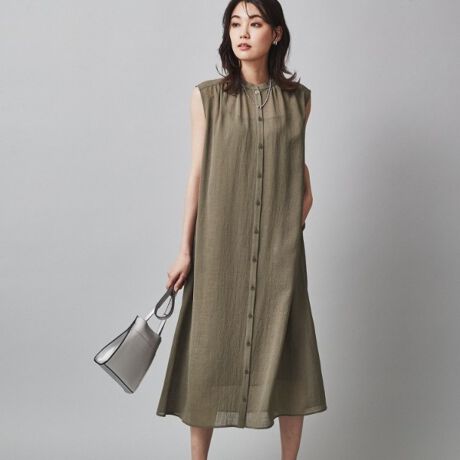 【ジレにもなるワンピース】バンドカラーデザイン シアーワンピース