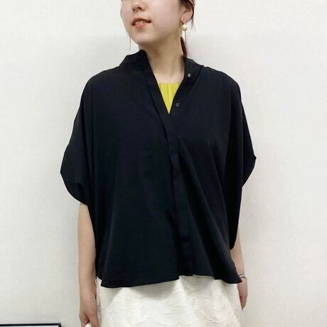 ソフトタッチなエアリースパンローンのショルダータックブラウス。