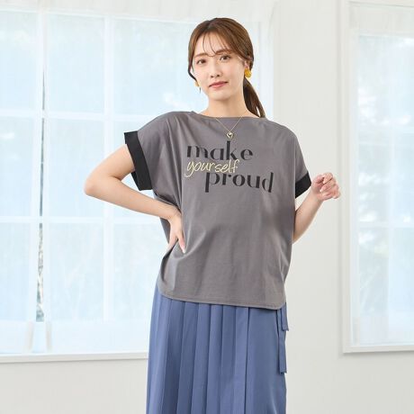 ロゴプリントに金刺繍を入れた、大人可愛いプリントTEE。