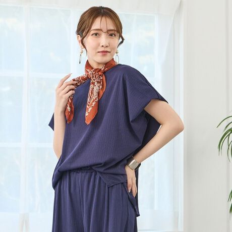 肩部分でデザインタックを入れて、ドロップショルダーにすることで、二の腕カバーもしてくれる嬉しい1枚に仕上げています。
