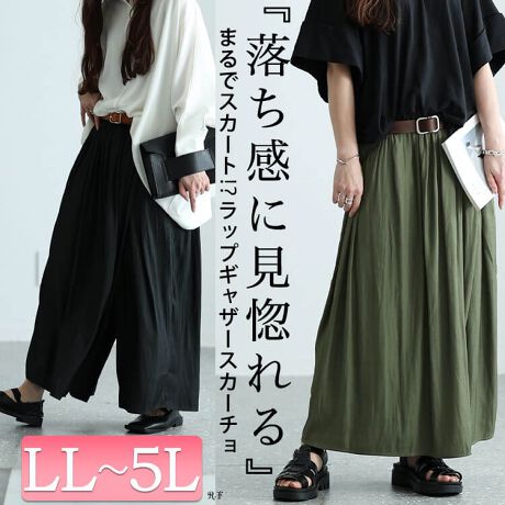 【大きいサイズ】 ラップギャザースカーチョ 大きいサイズ レディース ボトムス パンツ ロング 無地