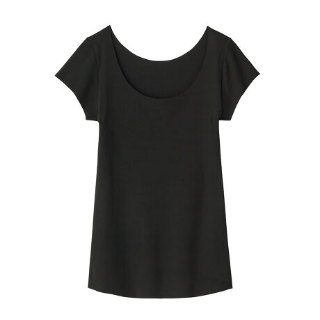 夏のインナーを色々探してこちらを購入しました。脇汗対策が出来るように袖ありのインナーが欲しかったのですが、前後の襟ぐりが深めのものがなかなか見つからず…。深めのVネックで首の後ろもやや深めに開いているワンピースのインナーとして探していましたが、こちらは襟ぐりがしっかり開いているので、ワンピースからチラ見えすることもなく、脇汗も1日気になりませんでした。色違いを追加したいです。