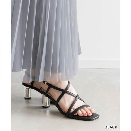 ナローストラップがレディライクな足元を演出してくれるヒールサンダル。