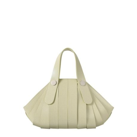 骨組みを表に出したような特徴的なデザインは、内袋をベルトで包んだ構造により、入れる物によってフォルムが変化します。