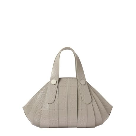 骨組みを表に出したような特徴的なデザインは、内袋をベルトで包んだ構造により、入れる物によってフォルムが変化します。