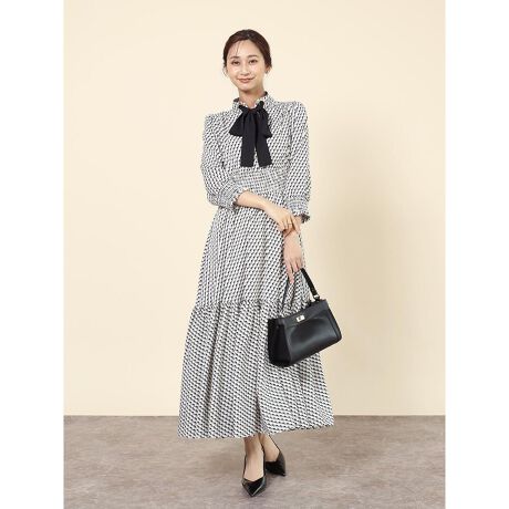 フロントの大きなリボンが目を惹くマキシワンピース。