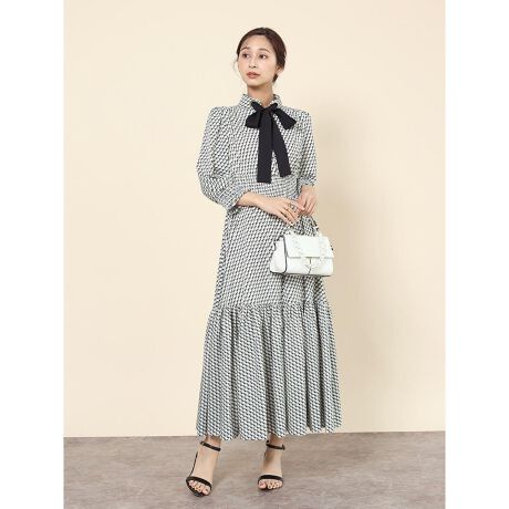 フロントの大きなリボンが目を惹くマキシワンピース。
