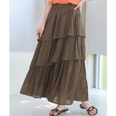 やわらかさと張り感を兼ね備えた、甘くなり過ぎない大人のティアードスカート