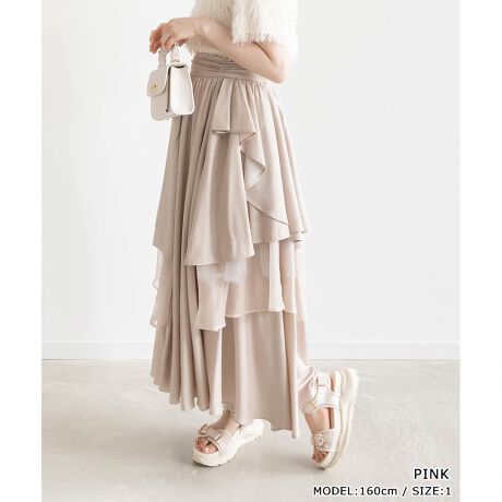 ・コーディネートの主役になるソフトチュールとオーガンジーを重ねたティアードデザイン