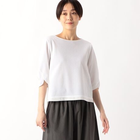 特殊縫製技術の、極細5mmのパイピングがデザインポイントのランタンスリーブのプルオーバーです。