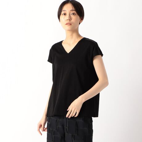 前後Vネックの衿ぐりはこなれた印象と共に、華奢見えする仕様でカジュアルなアイテムながら上品にまとめています。