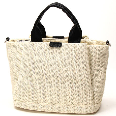 メッシュ状に編み上げた素材で仕立てられており、天然素材のサマーバッグと比べるとささくれで肌や衣服を傷つける心配がなく、やわらかく仕上がっています。