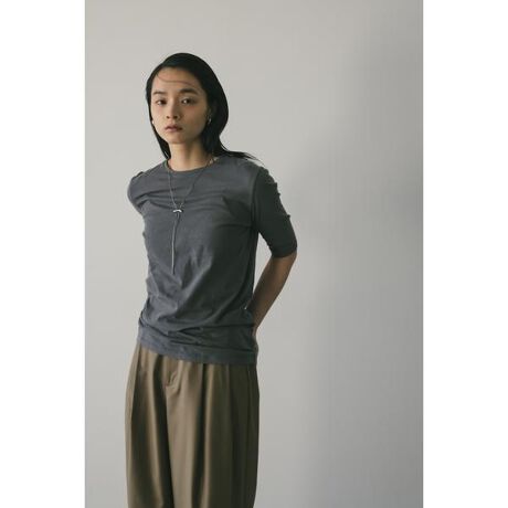 モデル身長163cm(FREEサイズ着用)スタミキ人気のシアーバックシームシリーズ。程よい透け感のルーズな5分袖Tシャツ。脇接ぎをなくし、肩線も後ろ倒しにしたすっきりとしたデティールにこだわった一枚。ラウンドヘムでインもアウトもしやすい着回し力抜群な優秀カットソー。透け感あり、ストレッチあり。【お手入れ方法】手洗い可