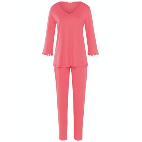 ディティールにまでHANROのこだわりがつまった、コットン好きの方のためのパジャマトップスは7分丈デザインシルケット加工をほどこした、身生地コットン100%のなめらかな素材を使用袖口にあしらったファッショナブルなドットレースは、HANROのデザインチームがオリジナルで制作したギリシャ製のもの※掲載サイズは輸入元サイズです。