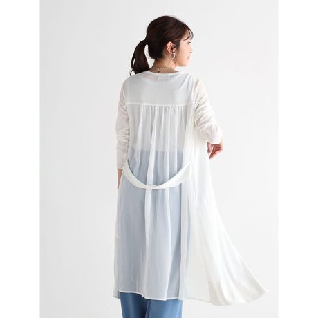 バックデザインに拘った、ギャザーたっぷりのシアー素材とベルトデザインがVinおなじみの一着。
