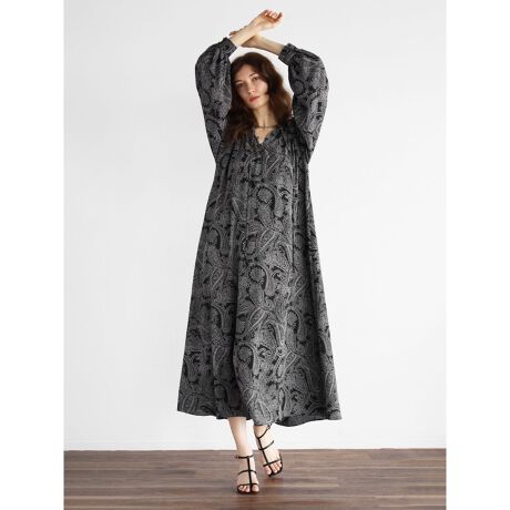 ペイズリープリントが目を惹くロングワンピース。