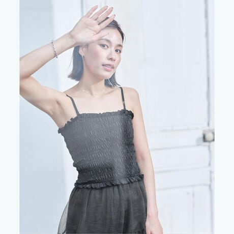 全体的にシャーリングを施し、立体感のある仕上がりに。