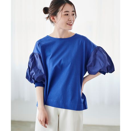 《WEB限定アイテム》バルーンスリーブ異素材プルオーバー