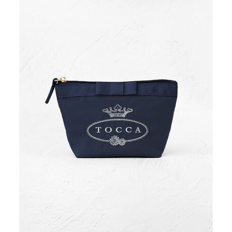 [型番:PCTZCW0950]グログランリボンやホールマークロゴ刺繍などTOCCAらしいディテールが光るポーチ。大き過ぎない舟形フォルムは、しっかりマチがあって見た目以上に収納でき、きちんと自立するので持ち歩きにも最適。シンプルで高級感のあるデザインは通勤やご旅行にも活躍し、さりげないギフトにもおすすめです。