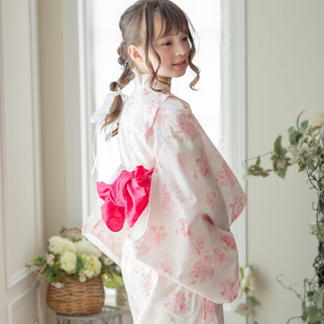 着付け簡単、ニュアンスカラーの兵児帯は、リボン結びするだけでかわいく決まります。