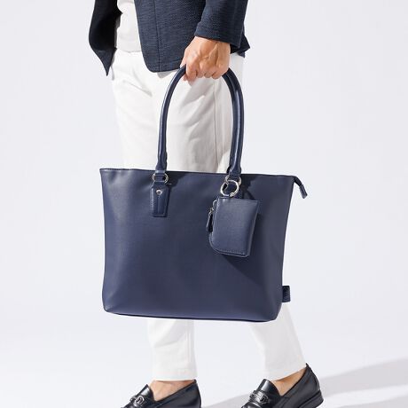 ベーシックな本体に、カシメ付きの大き目なハンドル付け根がアクセントになったトートバッグ。