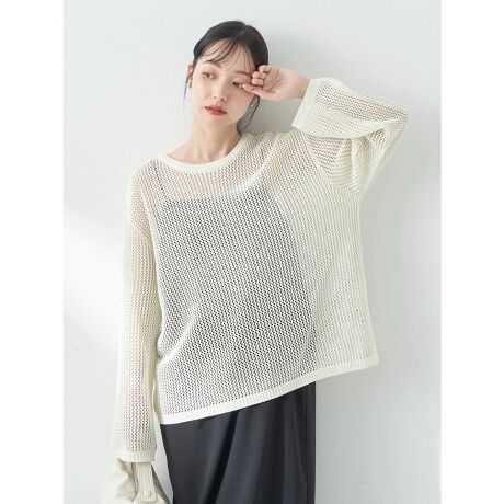 繊細に輝くラメをMIXしたメッシュ編みのプルオーバー。