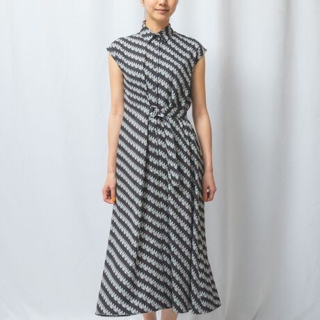 チェーンのようなN柄デザインがスタイリッシュなワンピース。サイドにベルトを施したアシンメトリーなディテールもポイント。ウエストをきゅっと絞ることで、メリハリのある女性らしい美スタイルを演出します。小さめな襟付きでキチンと感をプラス。フレンチライクなスリーブは華奢見せ効果も期待することができます。落ち着いたトーンで品良くスタイリングでき、エレガントな大人の装いに決まる1着です。