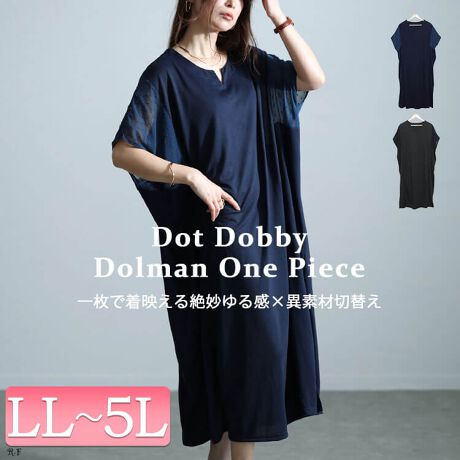【大きいサイズ】 ドットドビー切替えドルマンワンピース 大きいサイズ レディース ワンピース 半袖