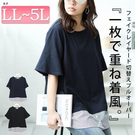 【大きいサイズ】 レイヤード風フレアスリーブプルオーバー 大きいサイズ レディース トップス フリル