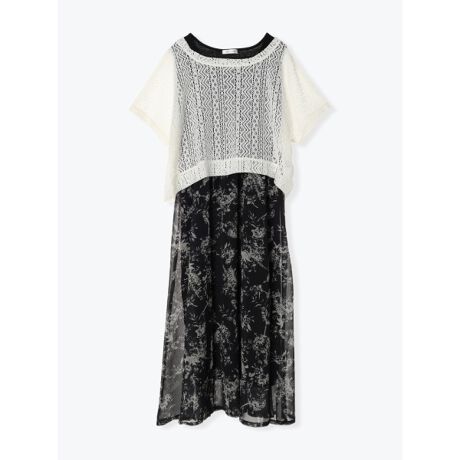 透け感のあるレースプルオーバーとワンピースのセットアイテム。