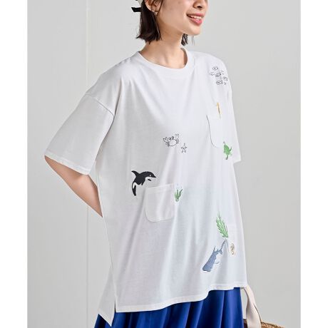 まるで水族館にいるような可愛い刺繍のTシャツ