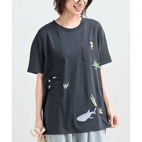 まるで水族館にいるような可愛い刺繍のTシャツ