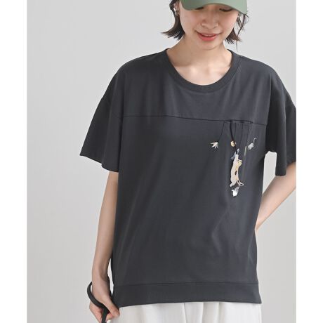 胸元で猫ちゃんがぶらぶらと揺れる遊び心溢れるトップス。