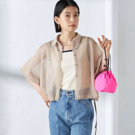 程よいメッシュの透け感とショート丈のバランスがマッチした大人シャツ