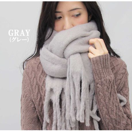 ふんわりとした風合いで、ボリューム感たっぷりのブークレーマフラー。
