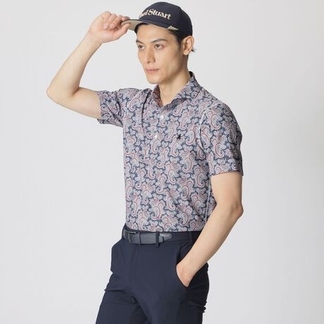 【GOLF】ペイズリープリントストレッチポロシャツ(吸水速乾・UVカット)