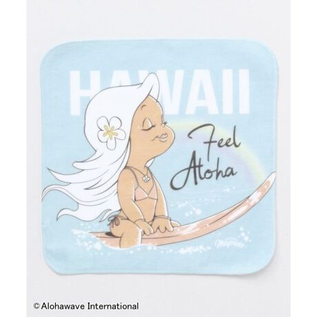 サーフィンとファッションを愛する365日HAWAIIを感じられるキャラクター、ALOHA MAPUA(アロハマプア)のハンドタオル。HAWAIIの可愛らしいイラストが描かれたデザインです。綿100%で吸水性も抜群です。