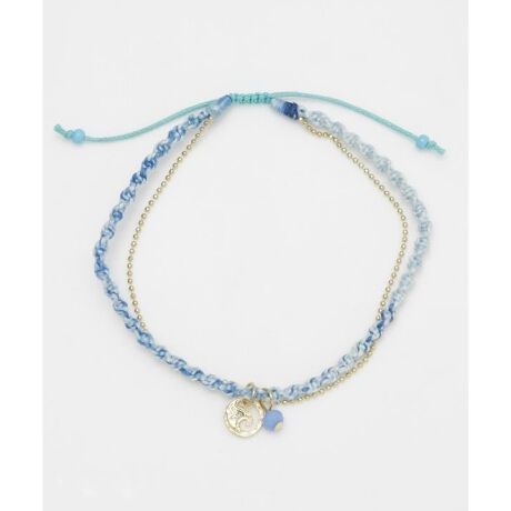 [型番:4IOZ8213-2024]ハワイのビーチの景色の移り変わりを表したような、グラデーションカラーのミサンガアンクレット。ボールチェーンとミサンガの2連使用で重ね着けしたような印象に。