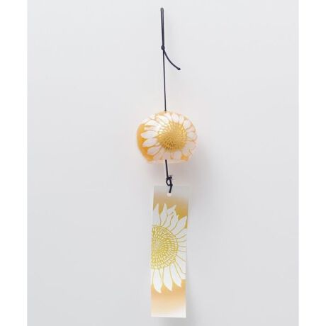 [型番:7JZP2201-2024]夏らしい柄をデザインした風鈴。手書きに箔を振りかけた蒔絵の手法を取り入れ、より美しく仕上げています。寝室やリビングに置けば、涼しげな音色がお部屋に響きます。福島県喜多方市で一つ一つ手作りされています。