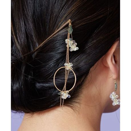 [型番:74AZ3204-2024]日本の夏の花々を、ガラスビーズで表現したかんざし。ゴールドの長めのチェーンは、上品な存在感があります。