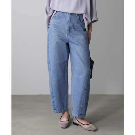 トレンドのコクーンパンツ。 横から見たシルエットもサマに見せてくれます。 加工感も新鮮に見えるように、アタリ感を見せるデザインとなっています。