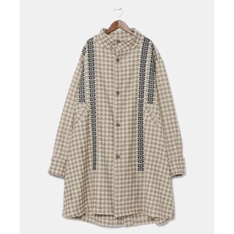 [型番:ILL-3822-2024]重量感のあるメンズコート。暖かなウール素材に機械刺繍で千鳥格子柄を入れました。