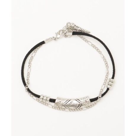 アフリカの広大な砂漠を遊牧する青の民、トゥアレグ族がお守りとして身に着けるアクセサリーをイメージしたアンクレット。チェーンとフェイクレザーを重ね着けしたような2連デザイン。古来より続くモチーフを連ねた模様をあなたの日常に。