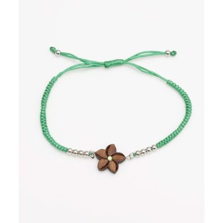 ハワイのコアウッドを使用したプルメリアモチーフのブレスレット。バースデーカラーのラインストーンがポイント。ハワイでプルメリアは「神の宿る花」または「女性の守り神」とも言われ、「幸運」の象徴とされています。 大切なオハナへの思いを込めたプレゼントとしてもオススメです。