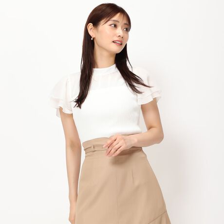 ふんわりとしたシフォンスリーブが魅力のニット。ビスチェ風のデザインになっており、レディライクな印象を与えます。リブ切り替えが程よいフィット感を演出。ボトムスにタックインしたスタイリングがおすすめです。■fabric透け感[やや有り]裏地[無し]伸縮性[有り]生地の厚さ[普通]