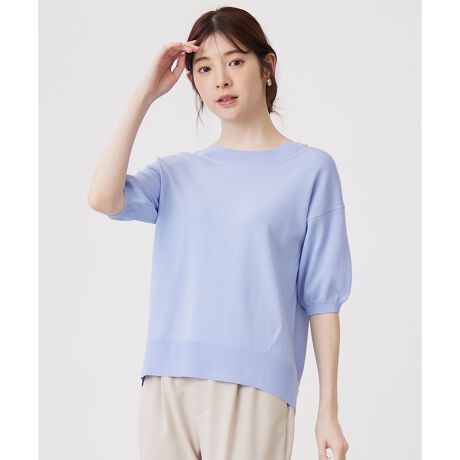 ■デザインプレーンな印象の半袖プルオーバーです。おしりにかかる位のちょうど良いレングスなので、パンツとのスタイリングがおすすめ。前身頃の切替がスッキリ感を演出し、細見えが狙えるデザインにしています。無地に加えボーダーも展開しており、シンプルになりがちな夏の季節にぴったりなきれいめニットTシャツです。