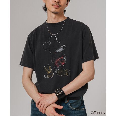 世界中で大人気のミッキーがプリントされたTシャツにREMI RELIEFが得意とする加工技術をあしらった一着。