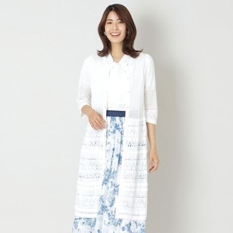 透かし編みで、ウエスト切り替えのコーディネートしやすいシルエットに仕上げました。