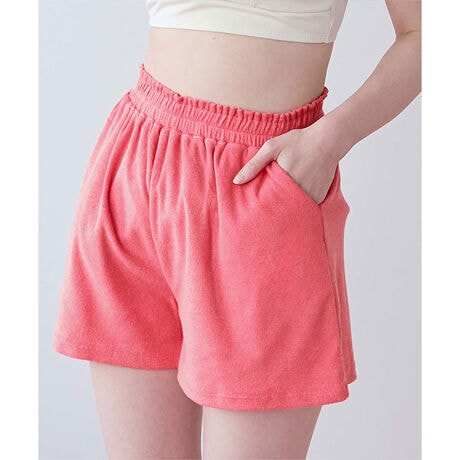 ・肌当たりの良い細かめのパイル素材のハイウエストショートパンツ。